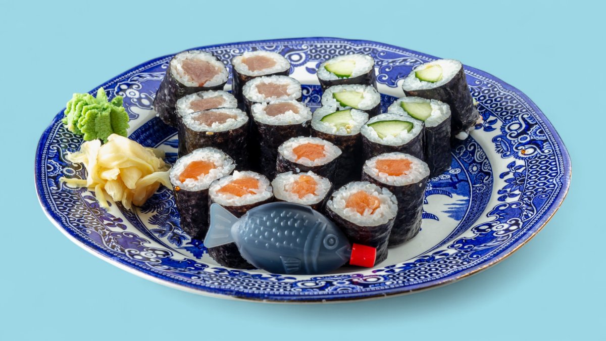 3x california rolls, 3x alaska rolls, 3x salmon rolls, 3x tuna rolls, 3x avocado rolls, 3x cucumber rolls
