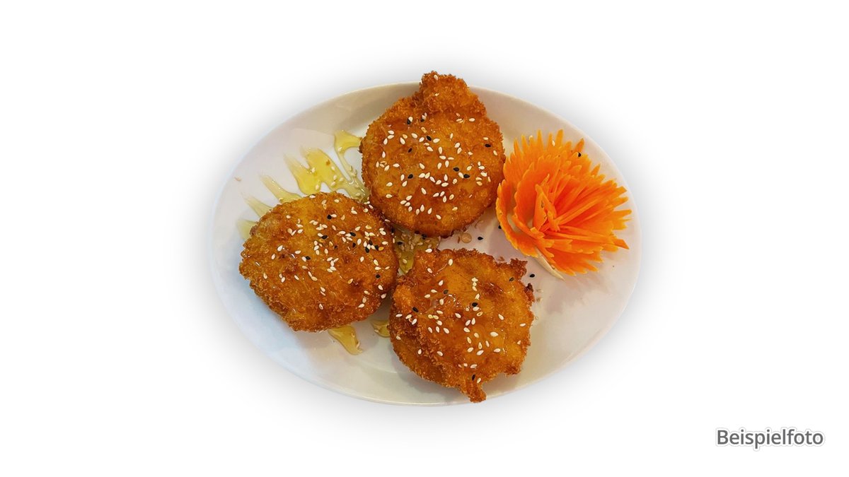 5 pieces, deep-fried dumplings filled with japanese cabbage, chicken, onions and chili sauce