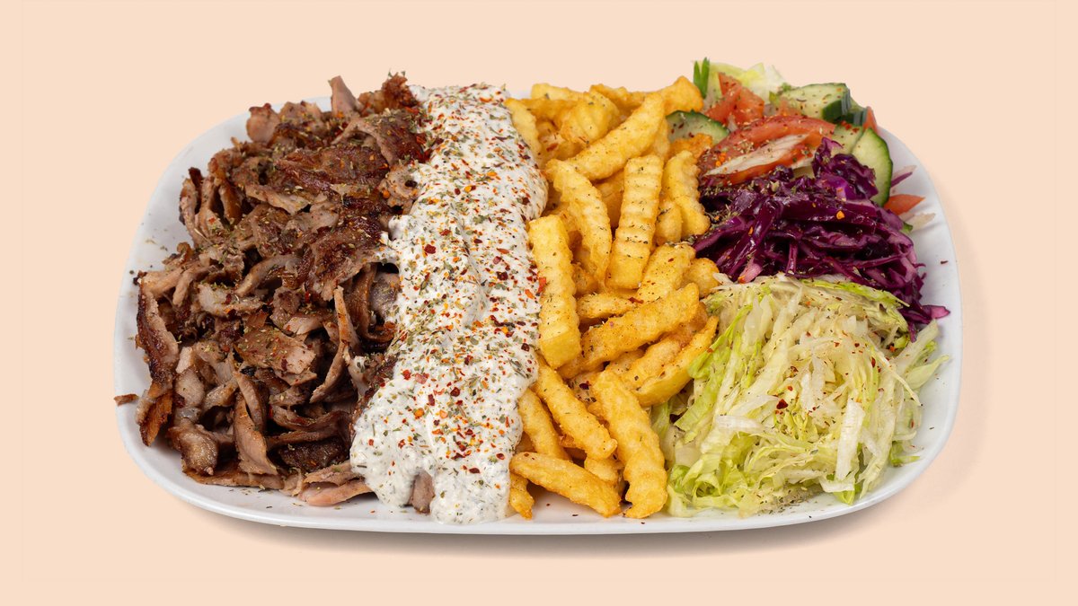 all dishes are prepared with iceberg lettuce, red cabbage, onions, tomatoes and a sauce of your choice ("Veal Döner Plate" and "Turkey Rotisserie Plate" are prepared without iceberg lettuce, red cabbage, onions and tomatoes)