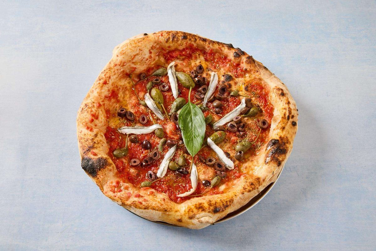 Tomaten-Sugo x Fior di Latte x Olivencrumble x Kappern x Bunte Cherry-Tomaten × Sardellen