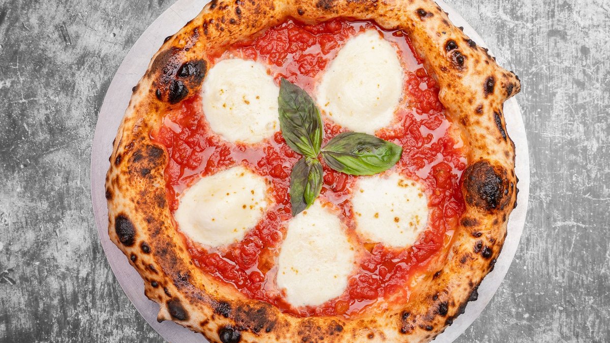alle Pizzen werden in der Größe von Ø 33 cm sowie mit San Marzano-Tomaten, Basilikum und Olivenöl zubereitet