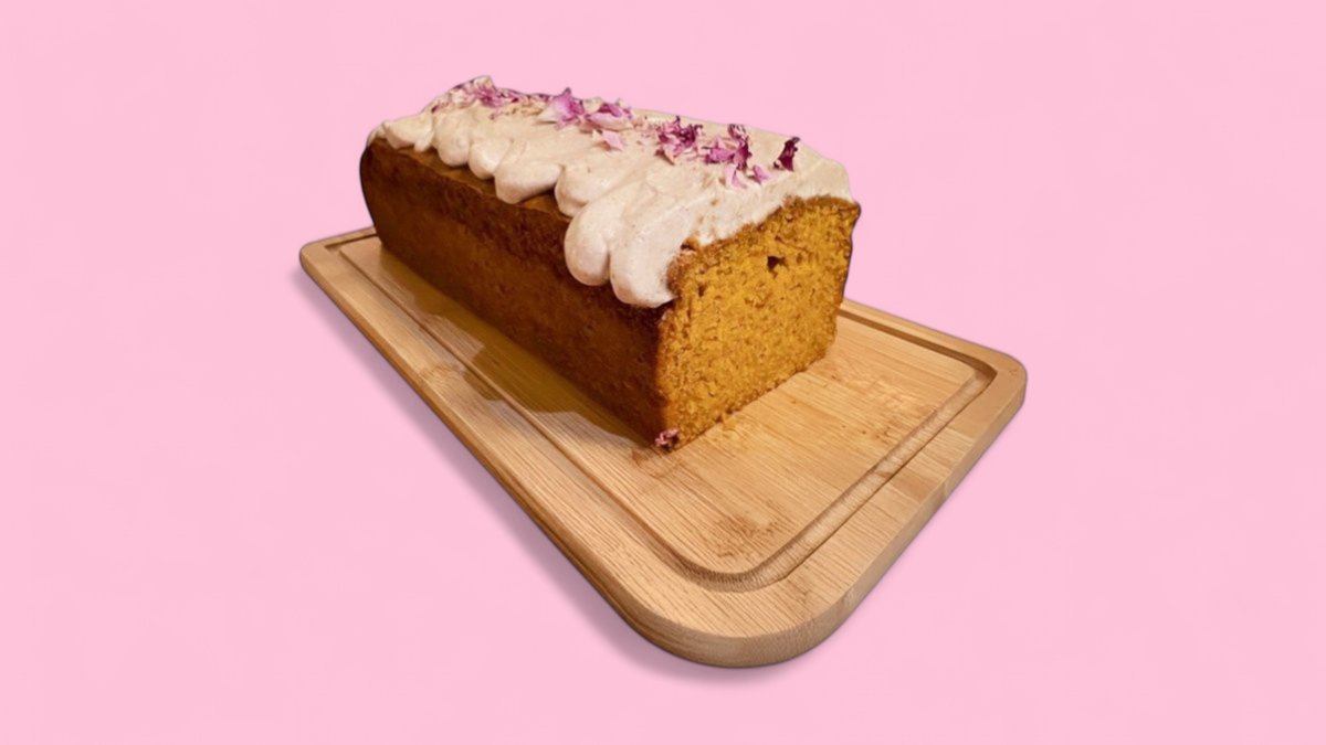 Saftiger Rührkuchen in Kastenform mit Olivenöl, Kürbispüree und Chat-Gewürzen