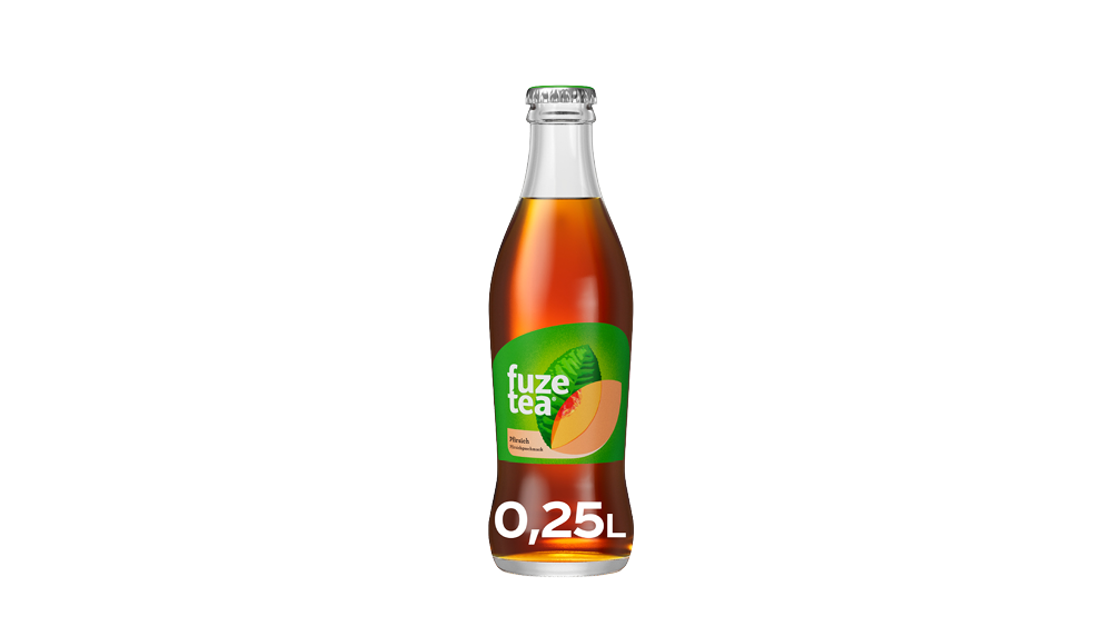 Iced tea drink with peach flavor, sugar, contains black tea extract, carbonated