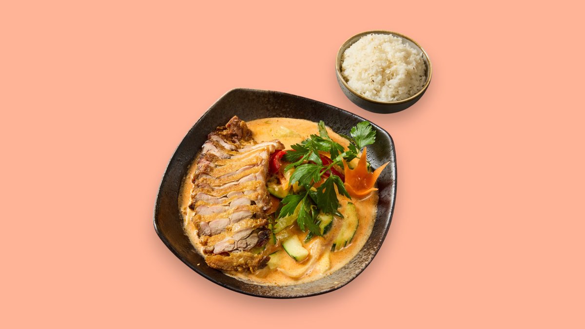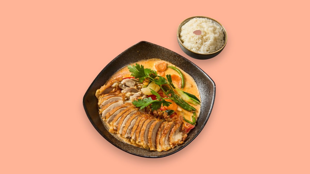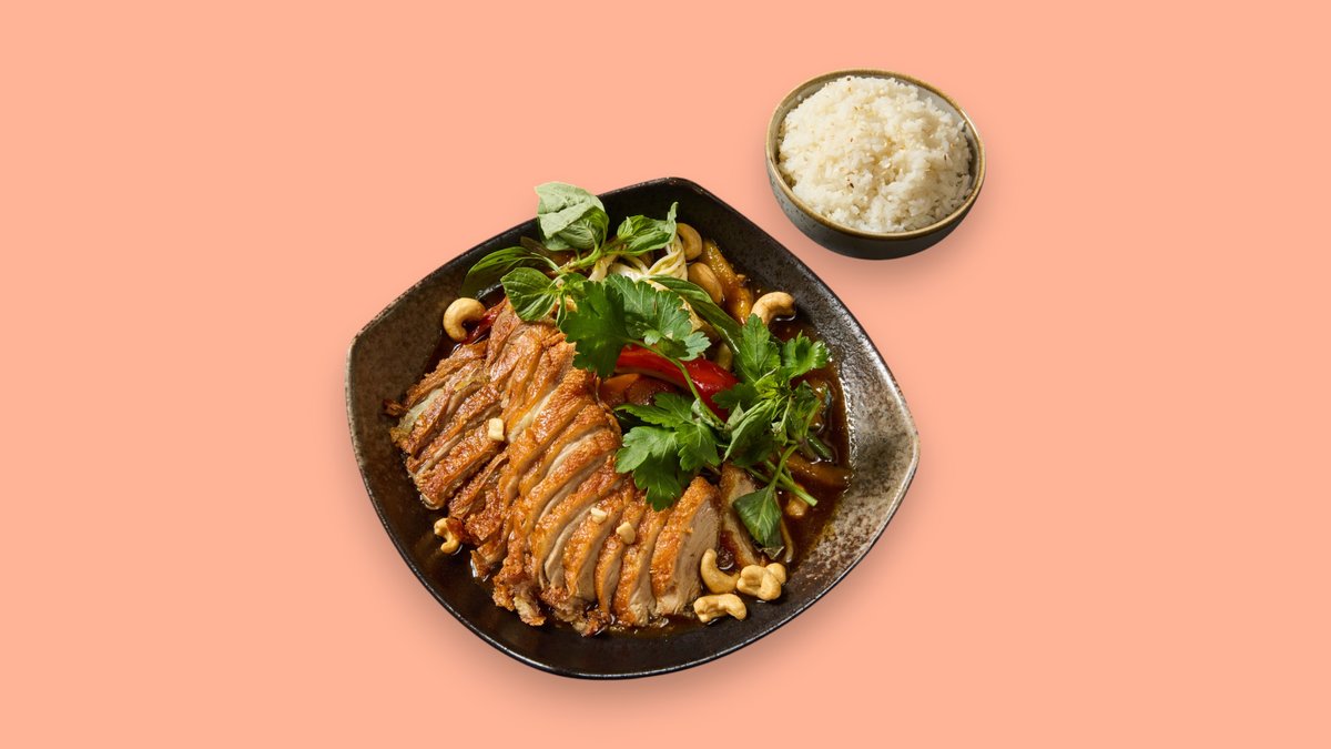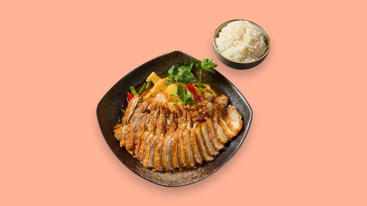 tender chicken with champignons, pineapple, lemongrass, cherry tomatoes and coriander