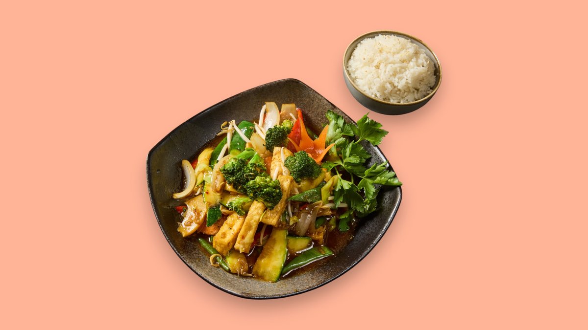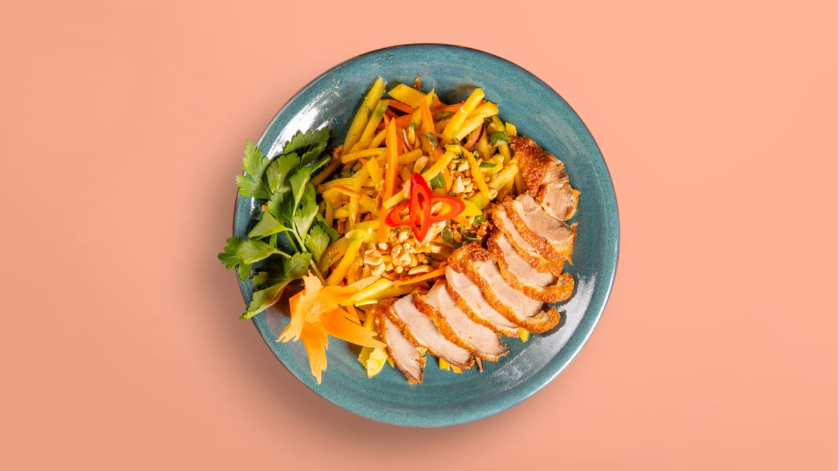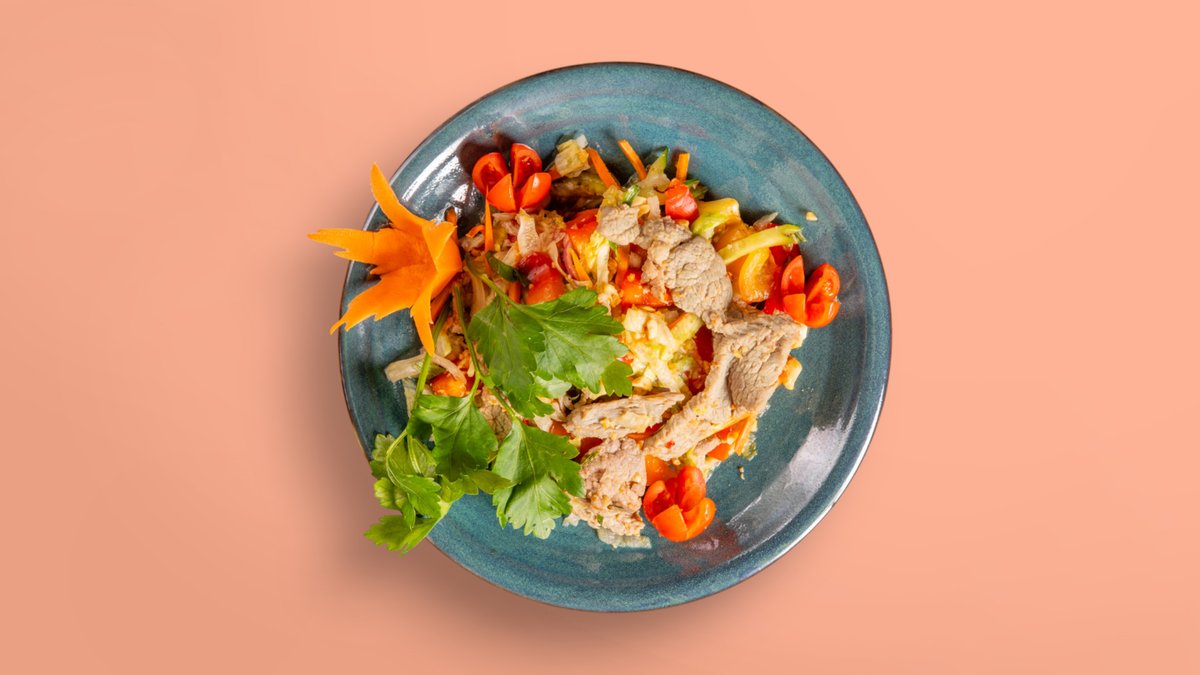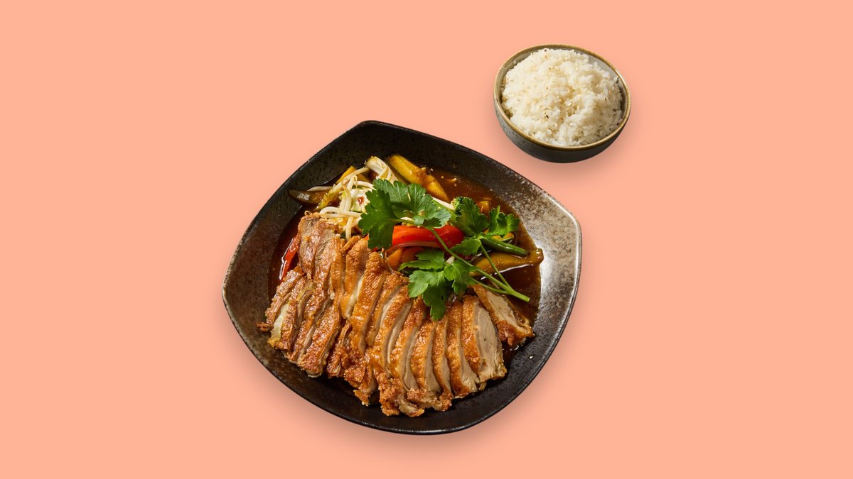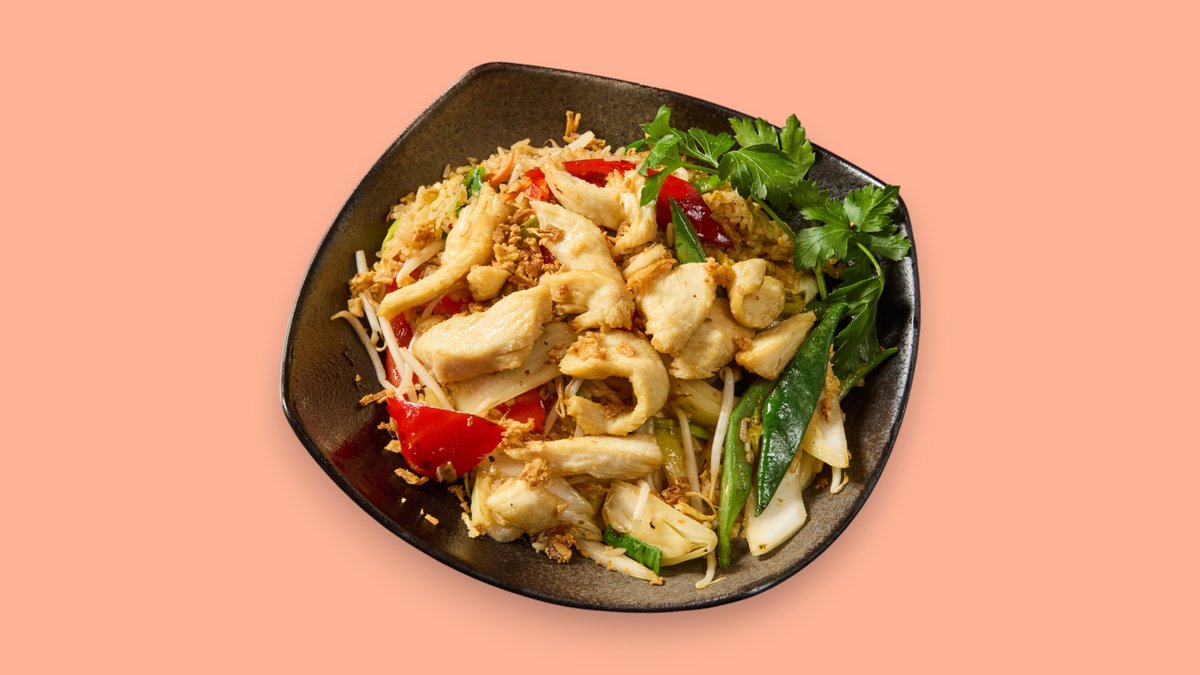 tender chicken with champignons, pineapple, lemongrass, cherry tomatoes and coriander