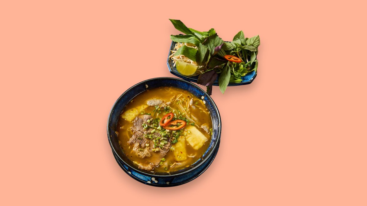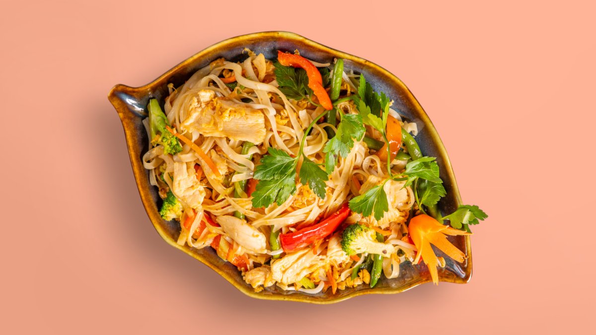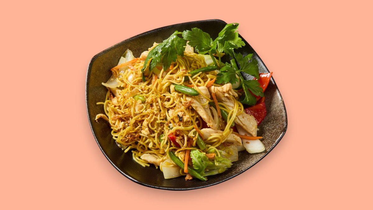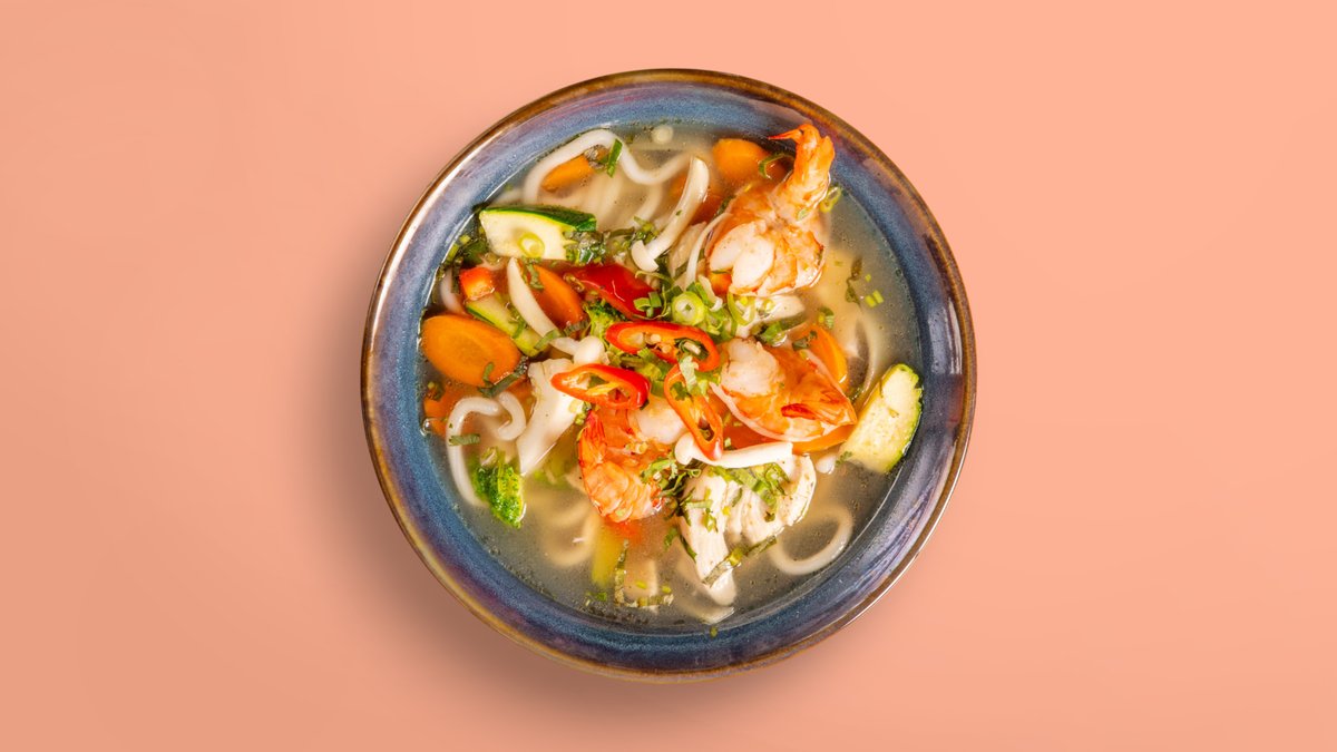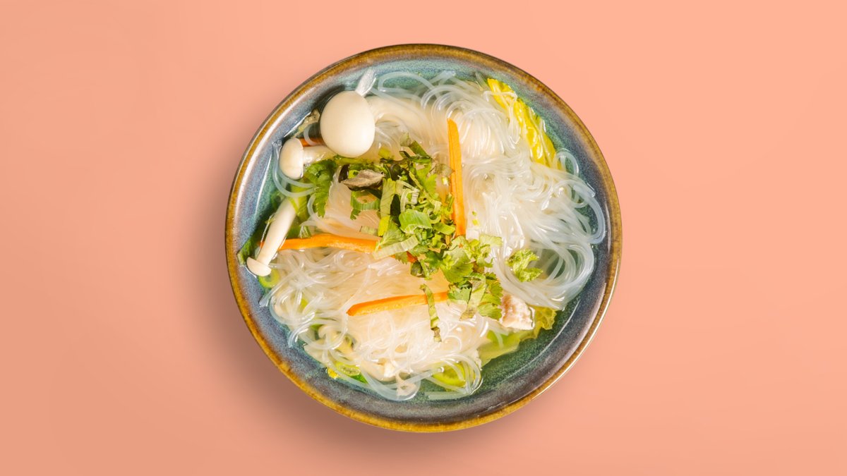 glass noodle soup with chicken breast fillet, spring onions and coriander