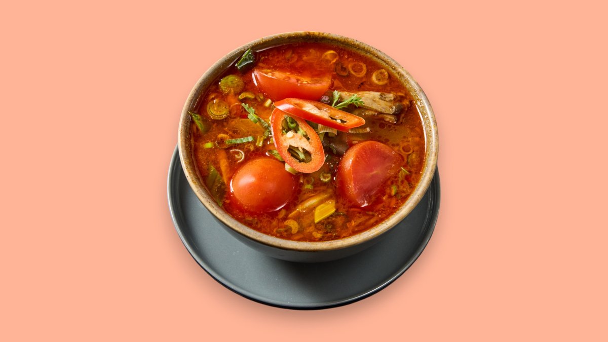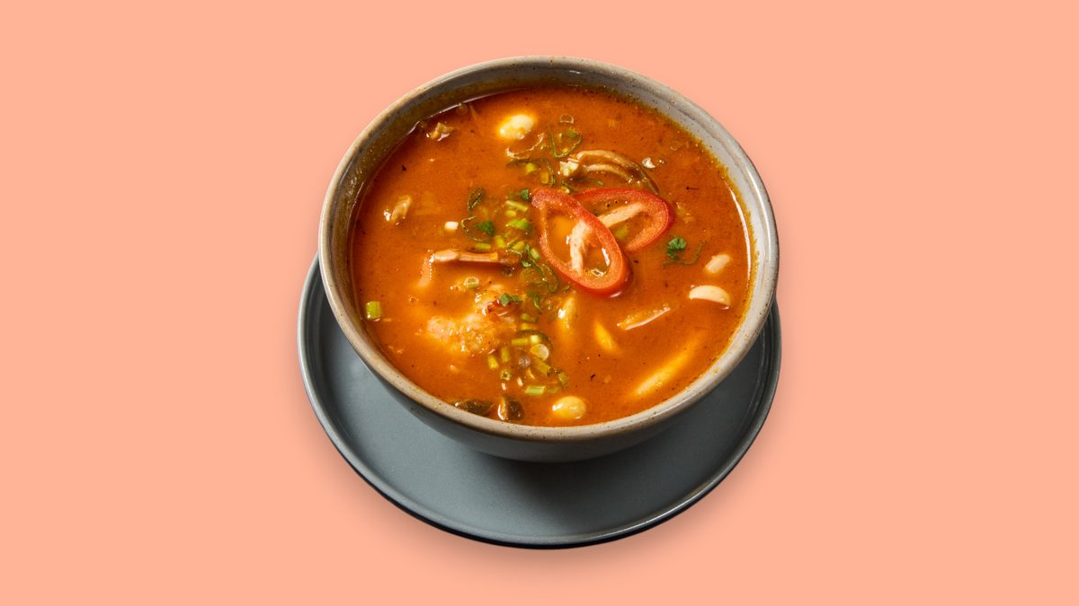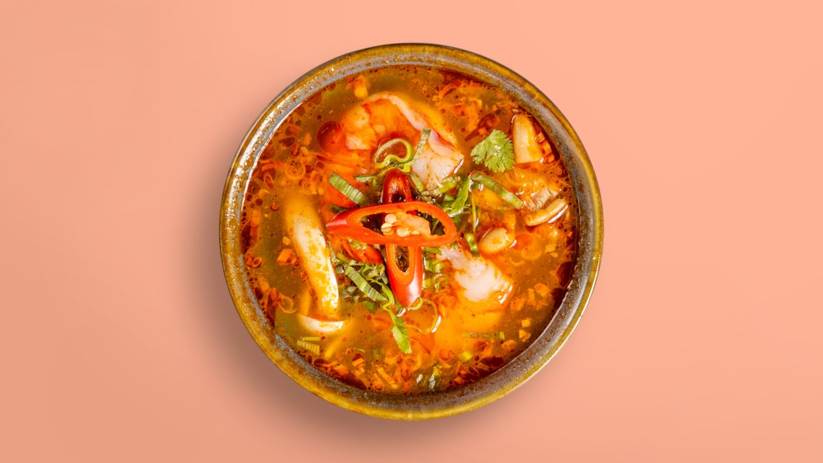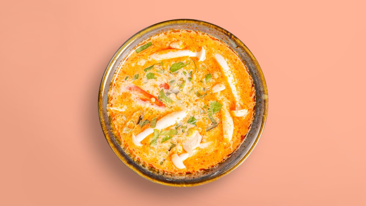 spicy chicken soup with lemongrass, coconut milk and straw mushrooms