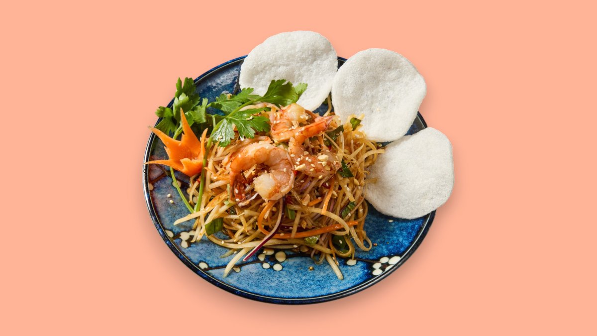 2 pieces cold rolled summer rolls with prawns, rice noodles and herbs