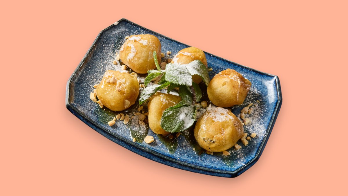 5 pieces steamed puff pastry rolls with prawns, onions and mushrooms
