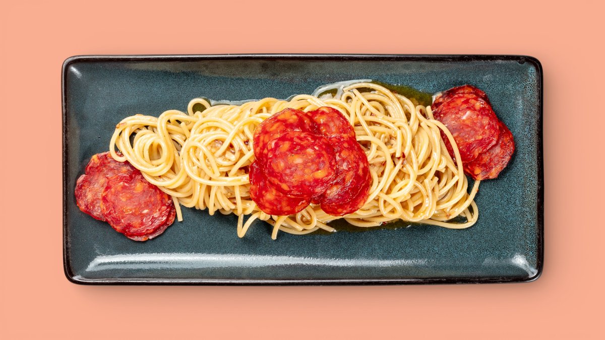 spicy pork luganega with garlic in a white wine sauce Contains alcohol, not suitable for children and pregnant women
