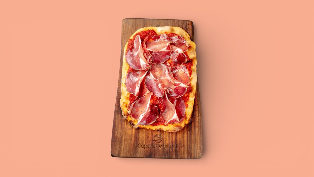 all pinsa are prepared with homemade tomato sauce (“5. Pinsa Parma Ham”, “Pinsa Bianca Speciale” and “6. Pinsa Radicchio” are prepared without tomato sauce)
