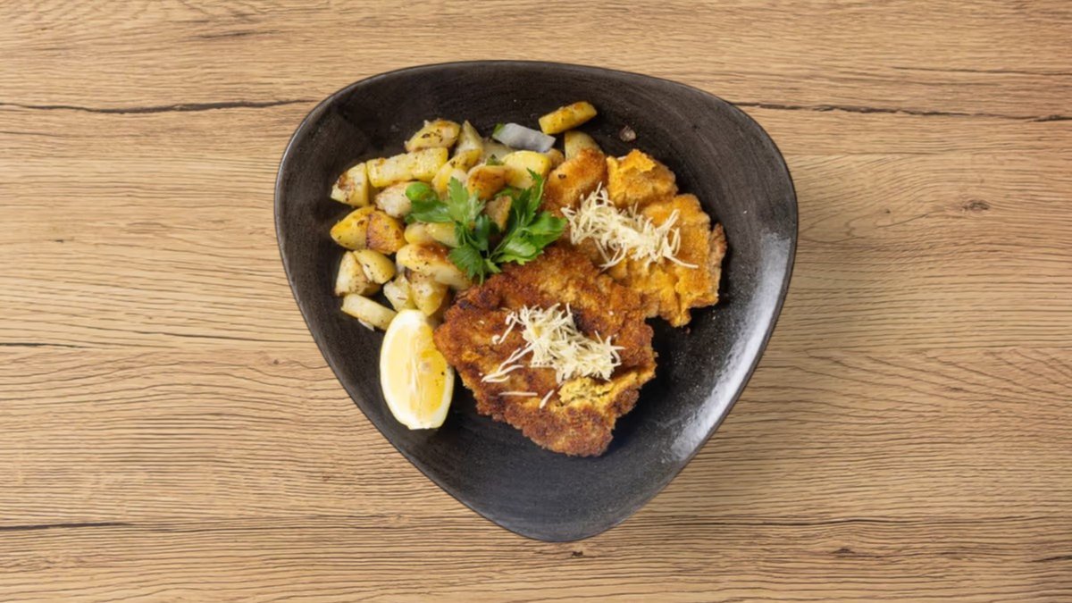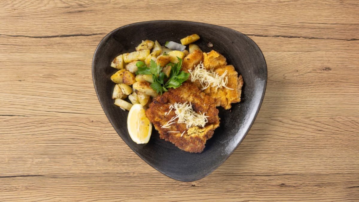 vom Schwein, klassische Panade, Pommes frites oder Bratkartoffeln