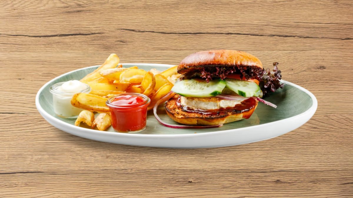 ca. 180g, BBQ Soße, Curry, Pommes frites