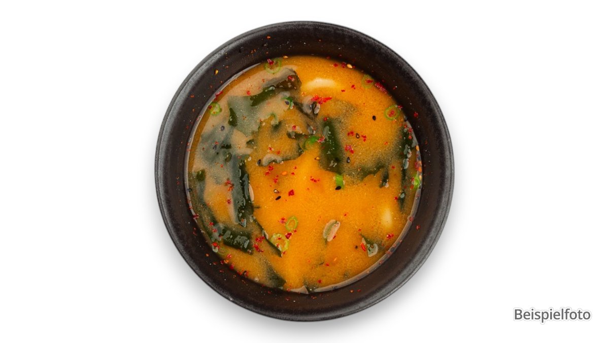 Suppe mit Sojabohnenpasta, Seetang, Lauchzwiebeln und Tofu