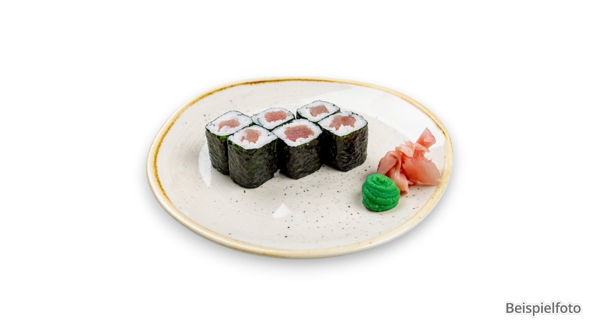 mit pikantem Thunfisch, Schnittlauch, Cocktailsoße, Sesamsoße und Unagisoße