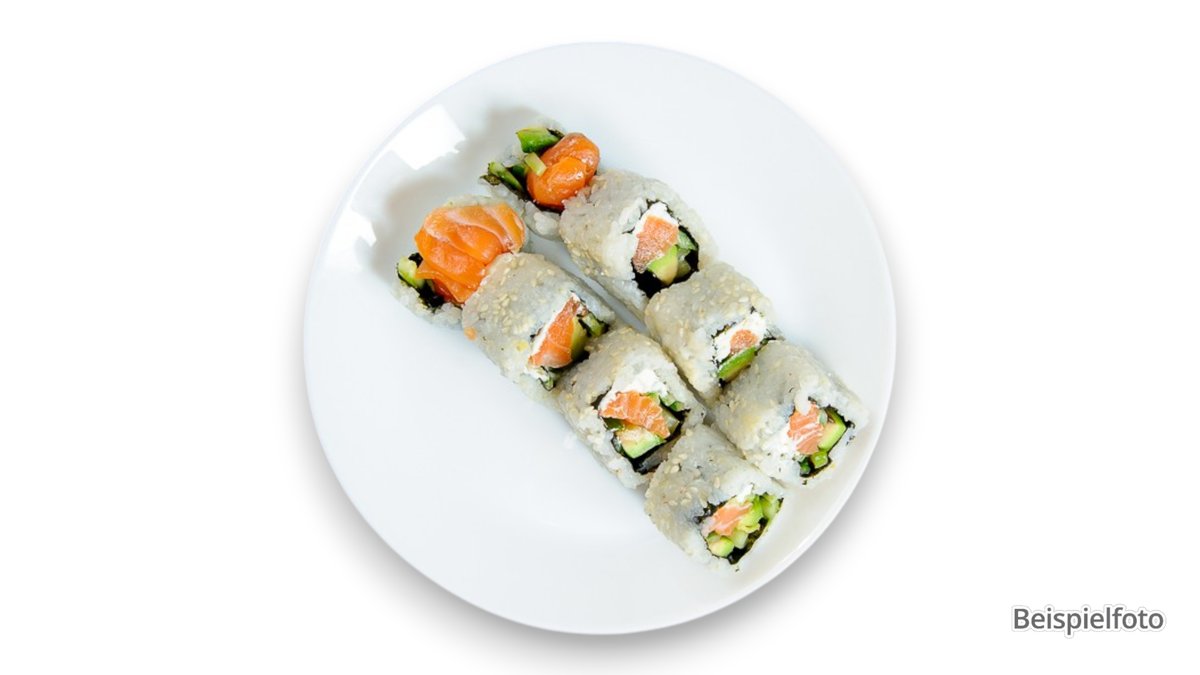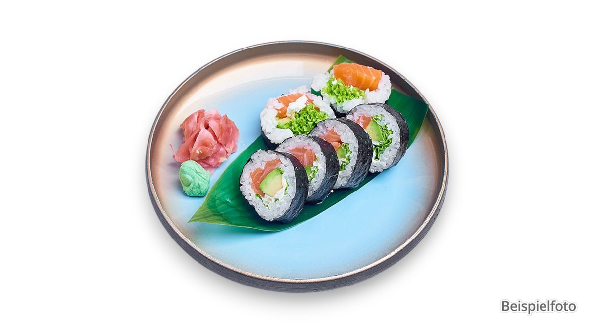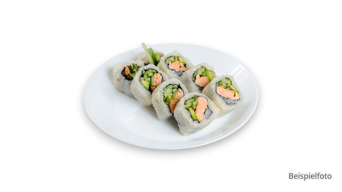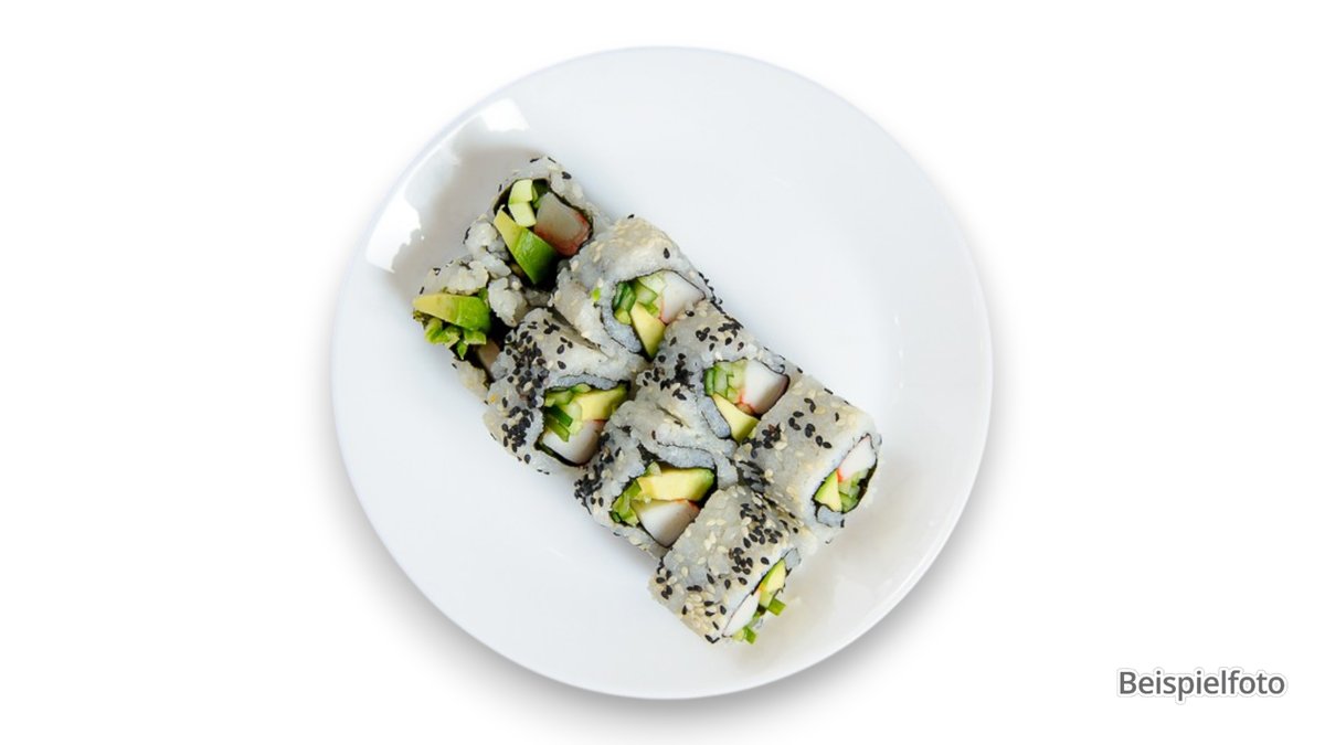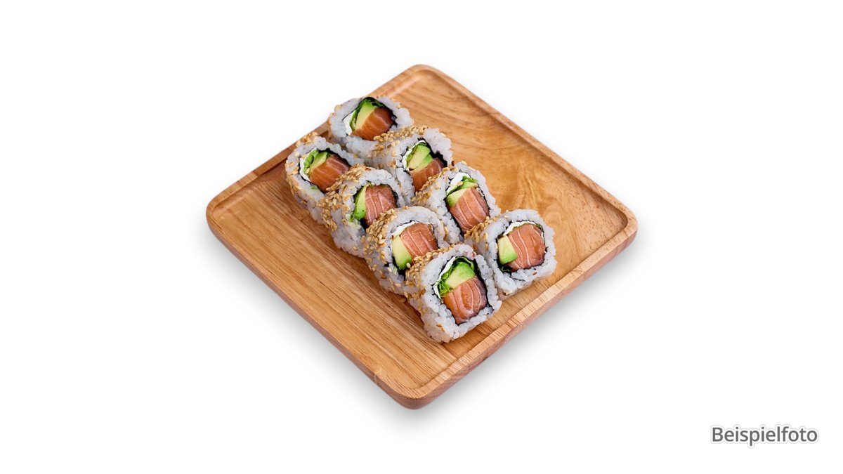 mit Avocado, Gurke, Mango, Schnittlauch, Frischkäse, Cocktailsoße, Sesamsoße und Unagisoße