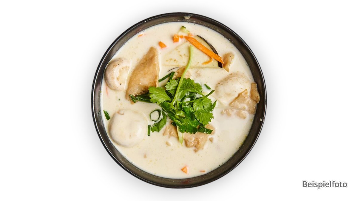 Kokosmilchsuppe mit Hühnerfleisch, Zitronengras und Gemüse