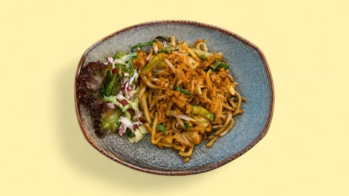 mit Udon-Nudeln, Gemüse und hausgemachter Sojasoße