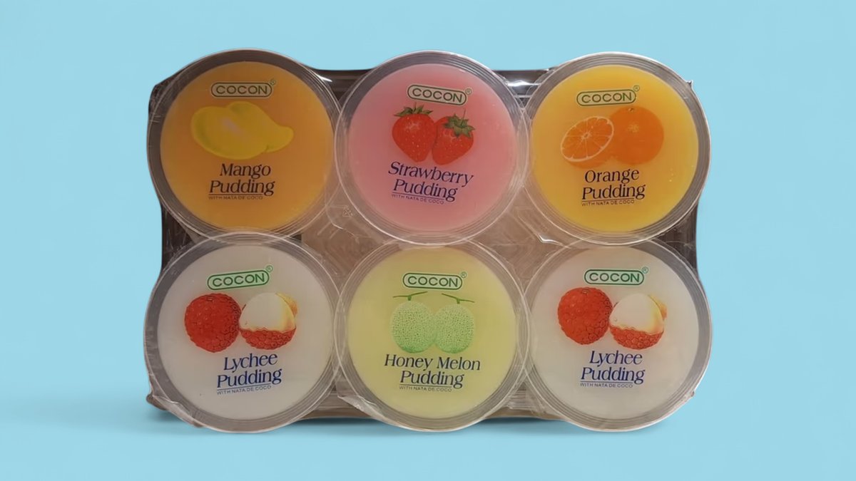 6 pieces Dessert with coconut gel and fruit flavor (similar to pudding) and fruit pieces