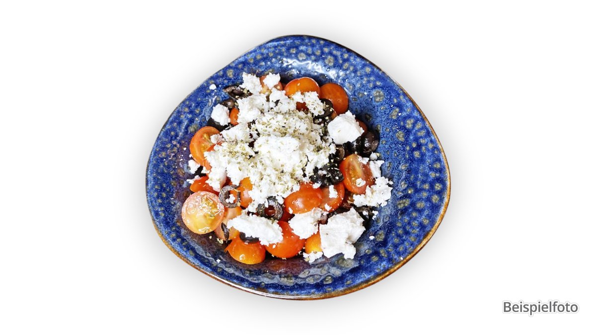 mit Mix-Salat, Hirtenkäse, Paprika und Oliven