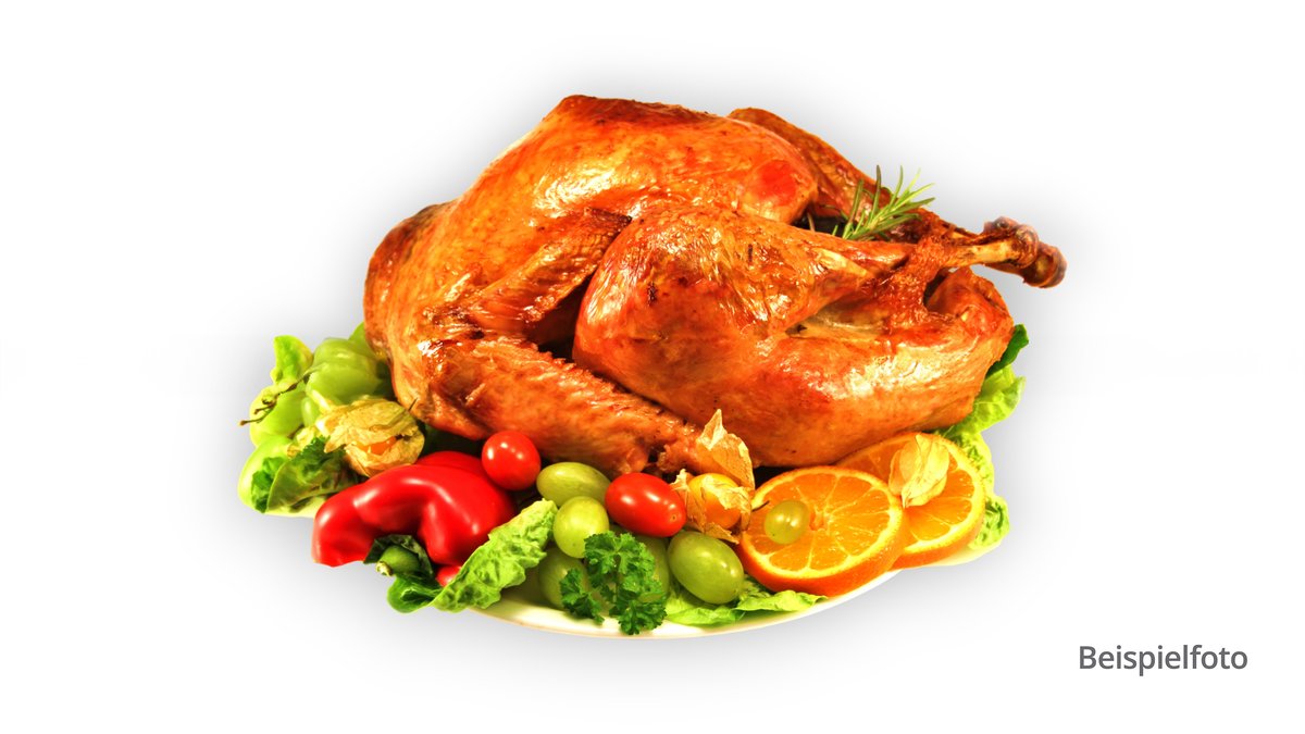 Ganzes Hähnchen, Pommes,Knoblauchsoße, Essiggurken, gegrillte Gemüse, Biwaz
