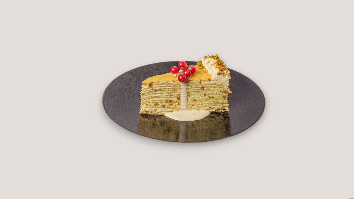 hausg. Pistazienpaste, Sahne, hausg. Vanillesoße / homemade pistachio paste, whipped cream, homemade vanilla sauce