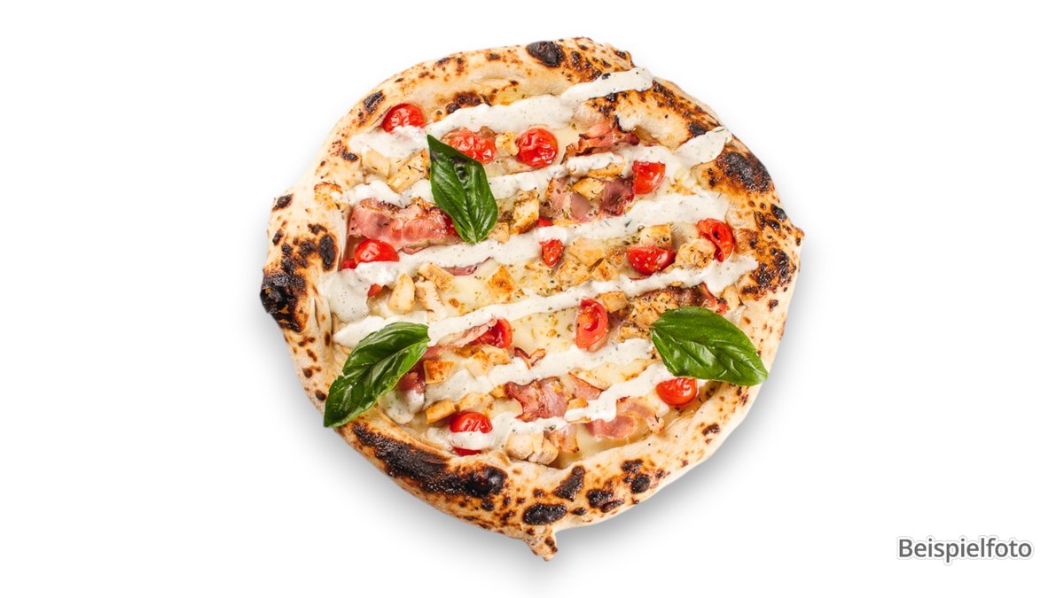 mit Hähnchen, Ananas, Mozzarella, Rucola und Käsesoße