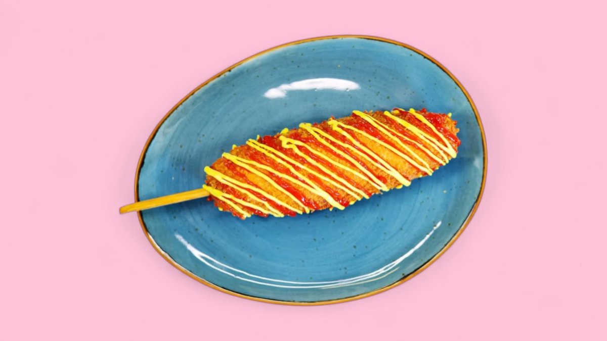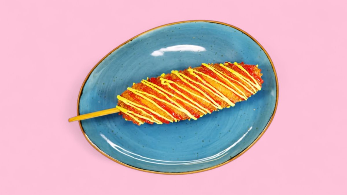 Mit einer saftigen Wurst im knusprigen Maisteig und einer chaotischen Portion Pommes drumherum sticht er direkt ins Auge.