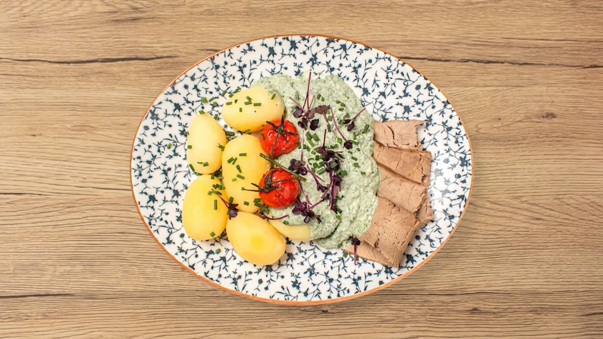 mit hausgemachter Grüner Soße und Salzkartoffeln