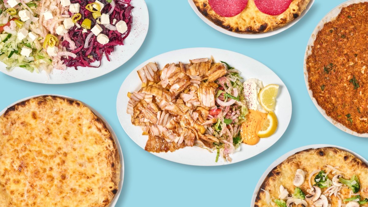 Pizza, kebap, pasta and salads with customizable toppings and sauces