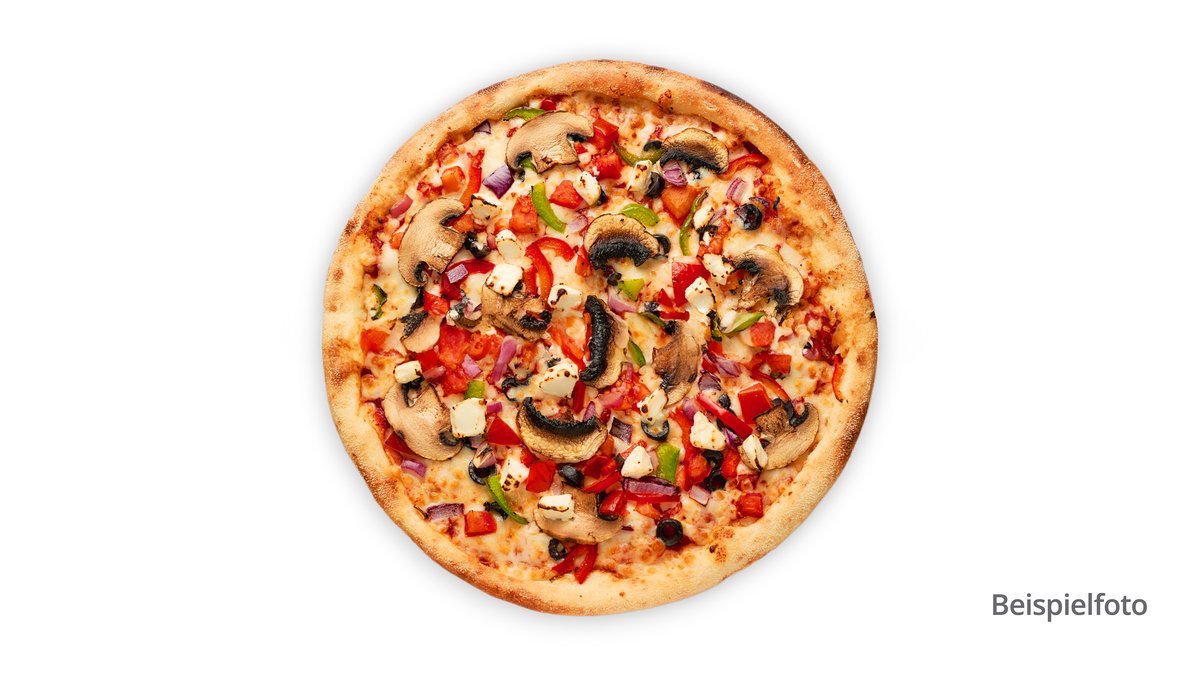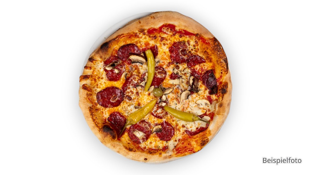 with fresh mushrooms, peppers, onions, pork salami and pork ham