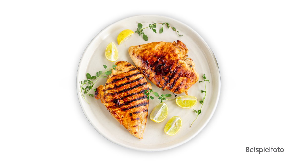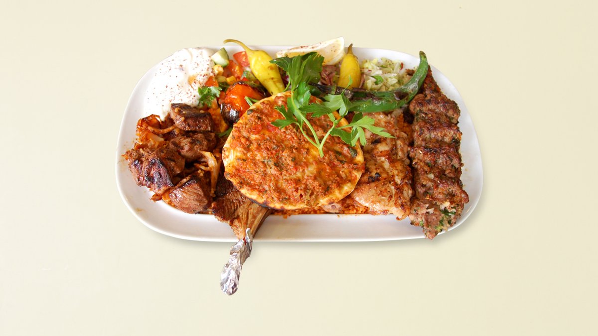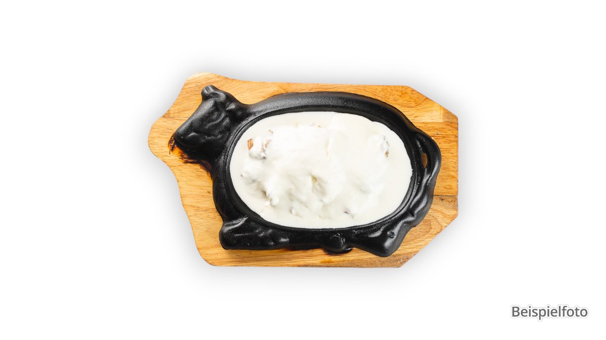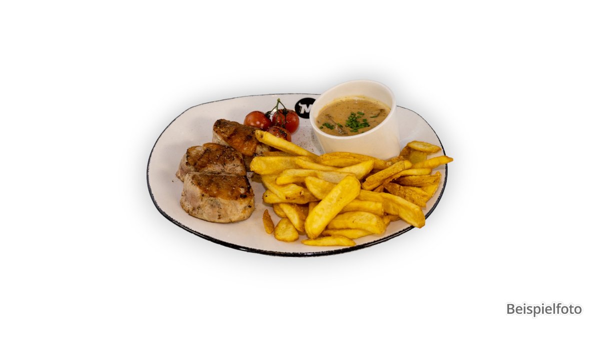 with pork fillet, chicken breast, chicken skewer, lamb medallions, rosemary potatoes and garlic cream sauce