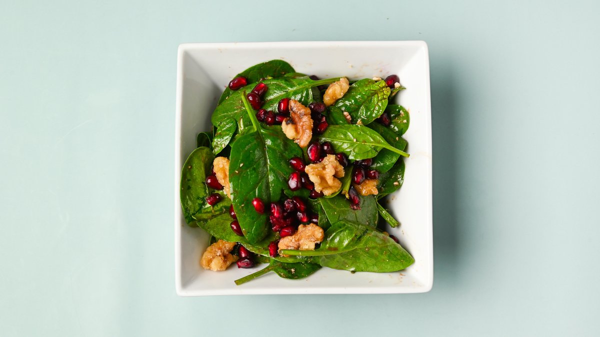 mixed salad with walnuts, shepherd's cheese and pomegranate dressing