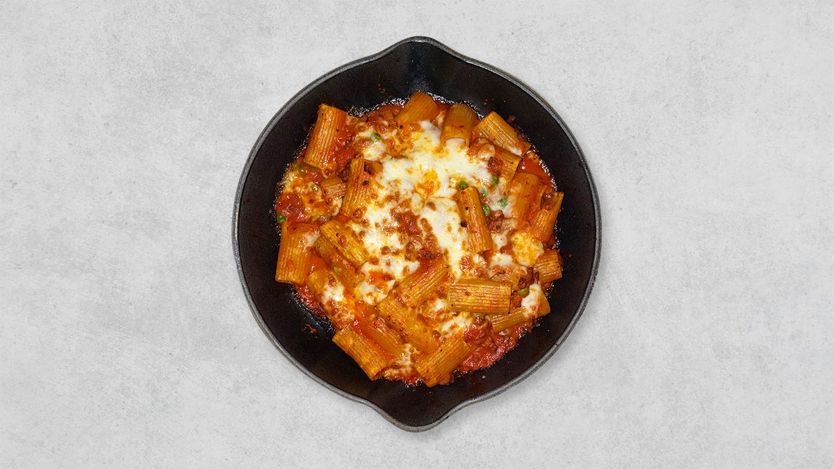 with ground beef, peas, spicy chili peppers and creamy cream sauce