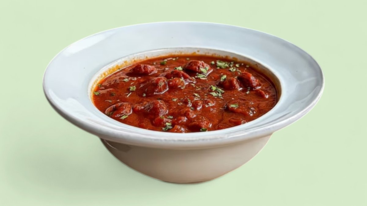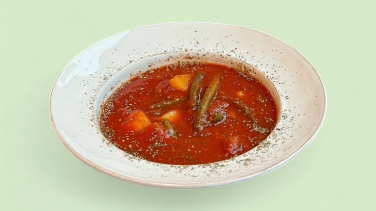 cremige, würzige Suppe aus frischen Tomaten mit grünen Bohnen und Kartoffeln