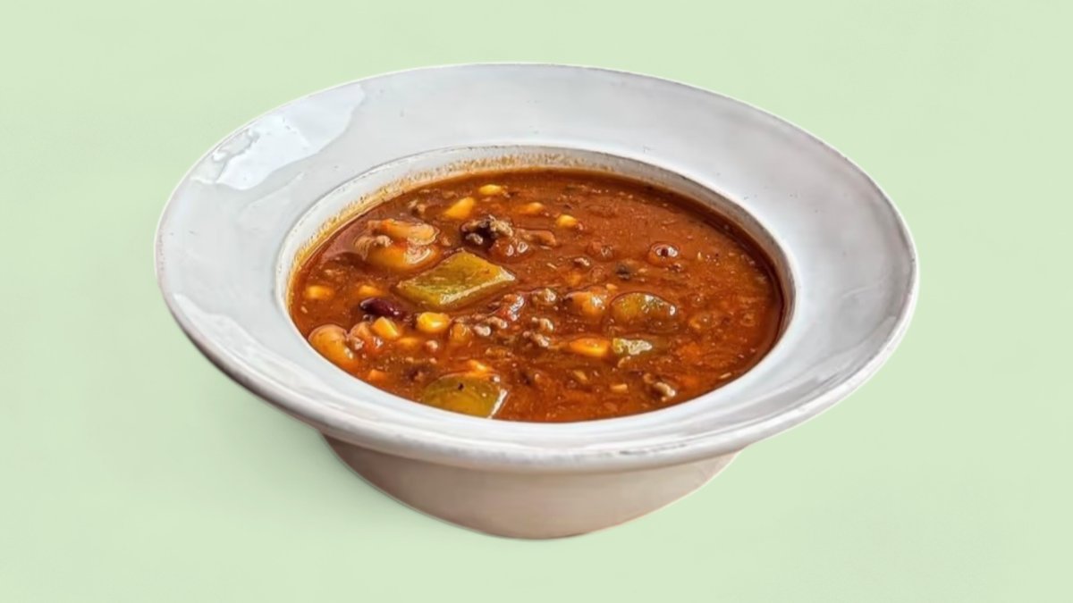 scharfes Gericht mit Schweinefleisch, roten Bohnen, Mais und Chili