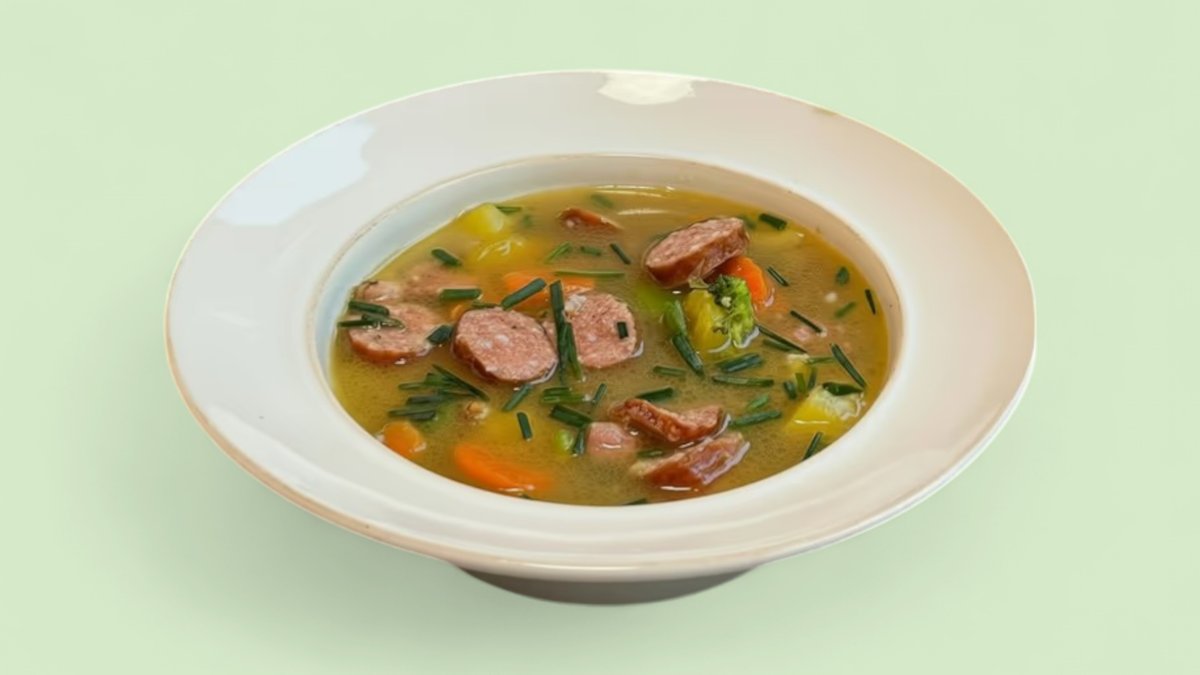 kräftige Gemüsesuppe mit Mettwurst vom Schwein und Kasseler