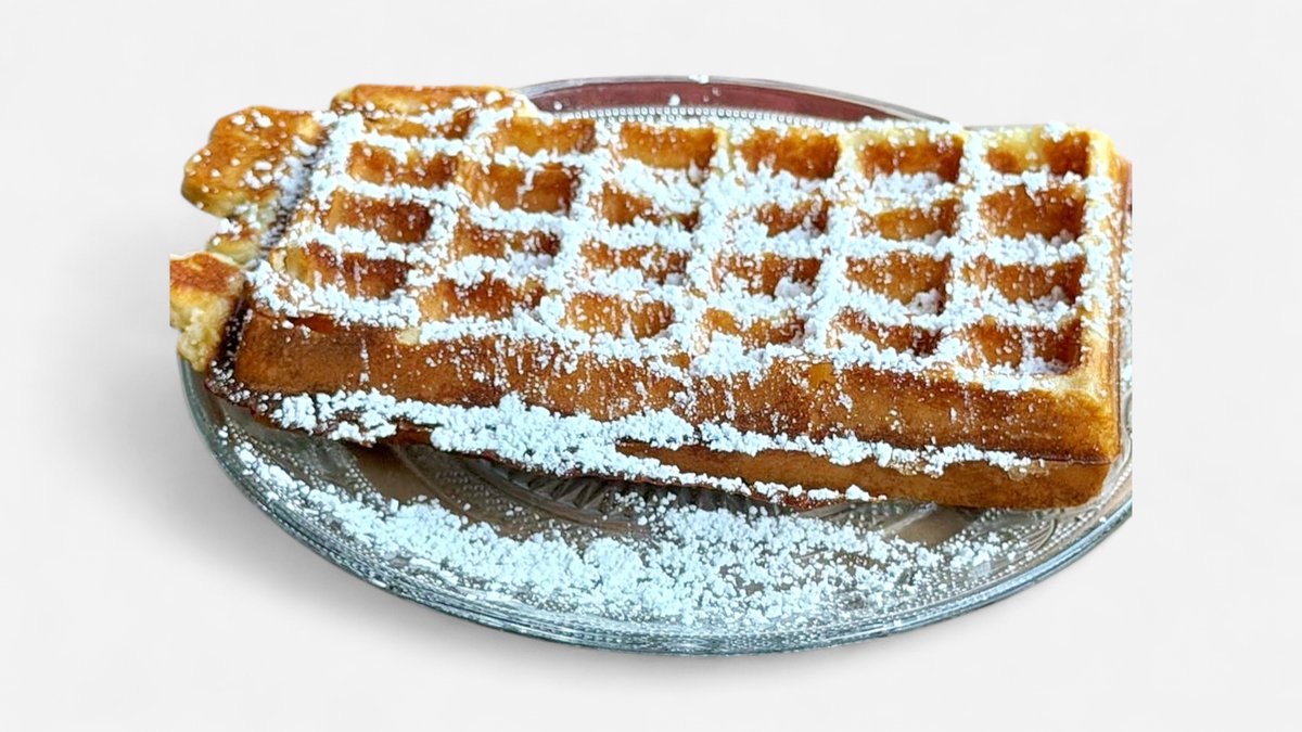 dicke belgische Waffel, bestäubt mit Puderzucker