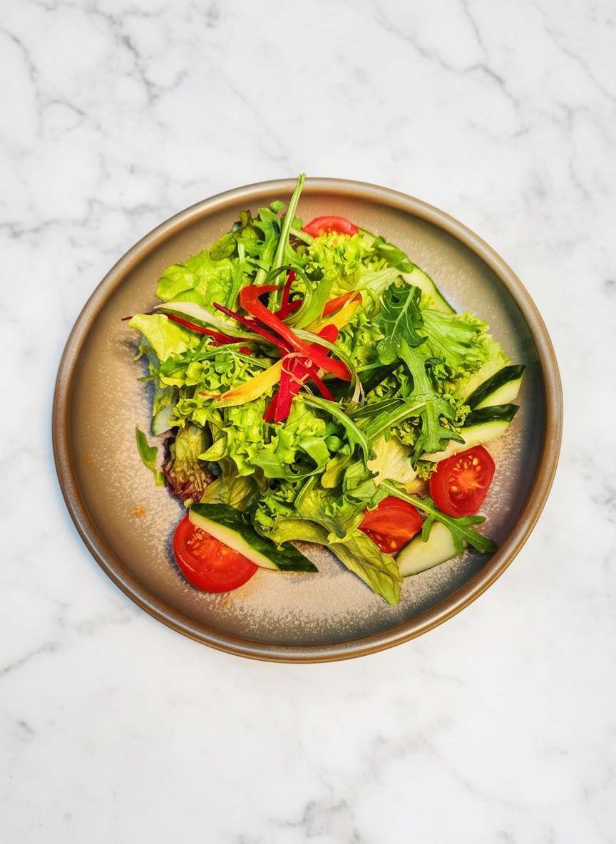Bunte Blattsalate mit Tomaten, Gurken und Rucola