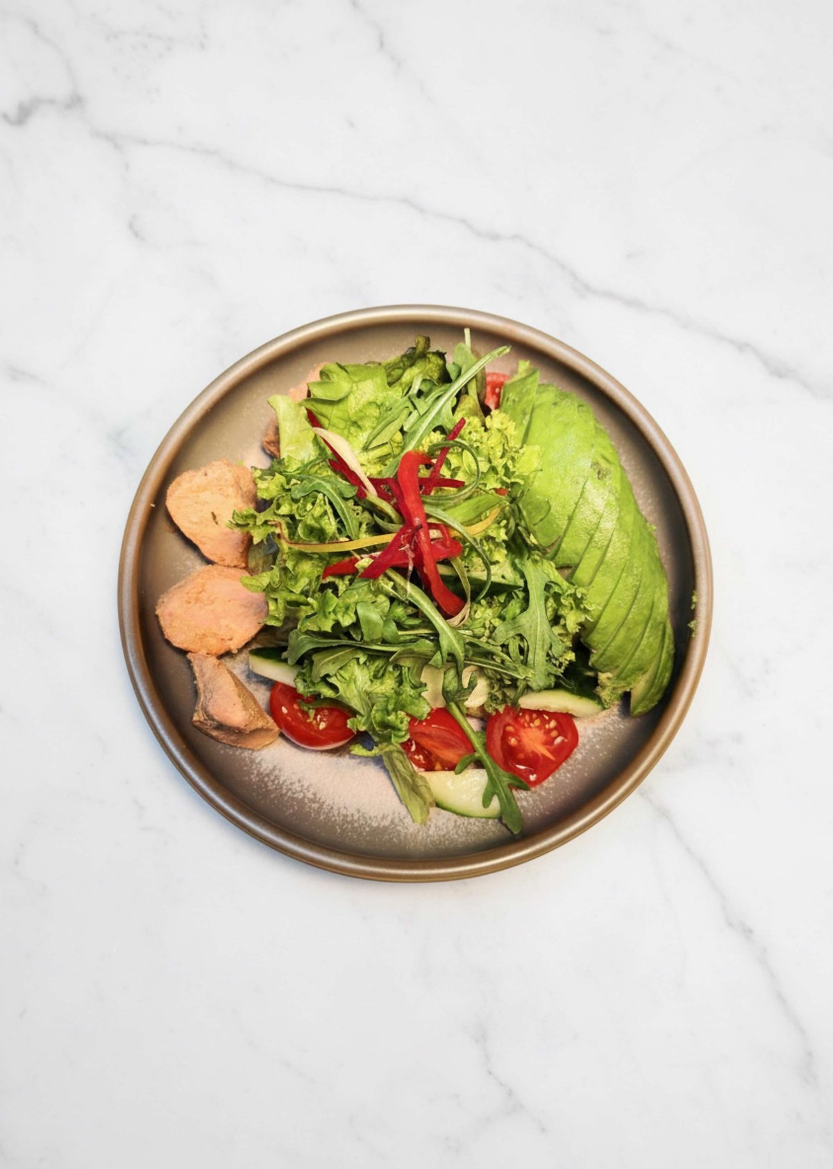 Gegrilltes Hähnchen Brust mit Blattsalate, Gurken, Tomaten und Avocado