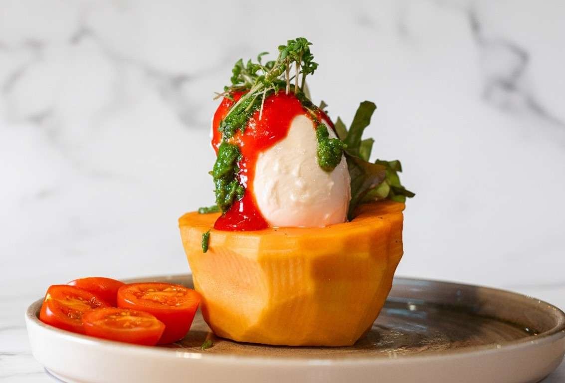 Büffel Mozzarella mit Papaya, Blattsalat und Tomaten