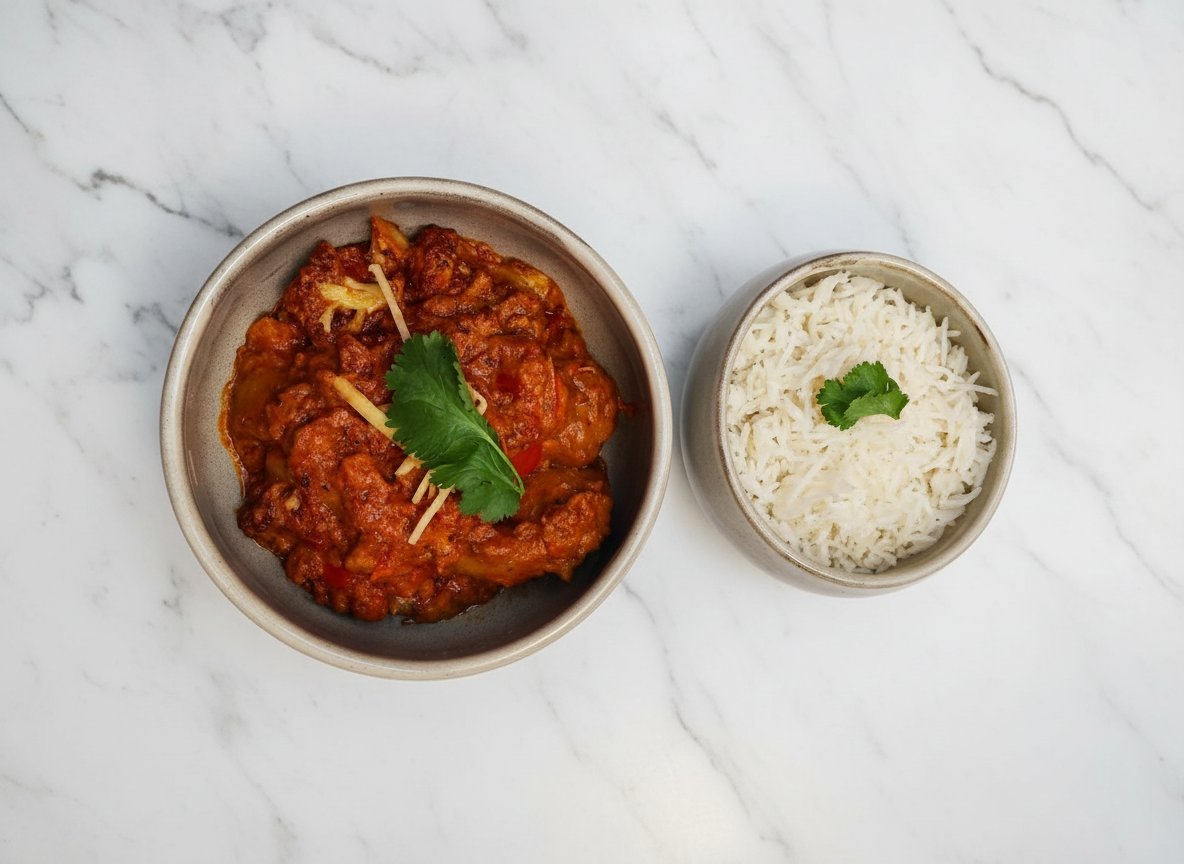 Zartes Lammfleisch in einer würzigen Tomaten-Zwiebel Soße mit Kokosmilch