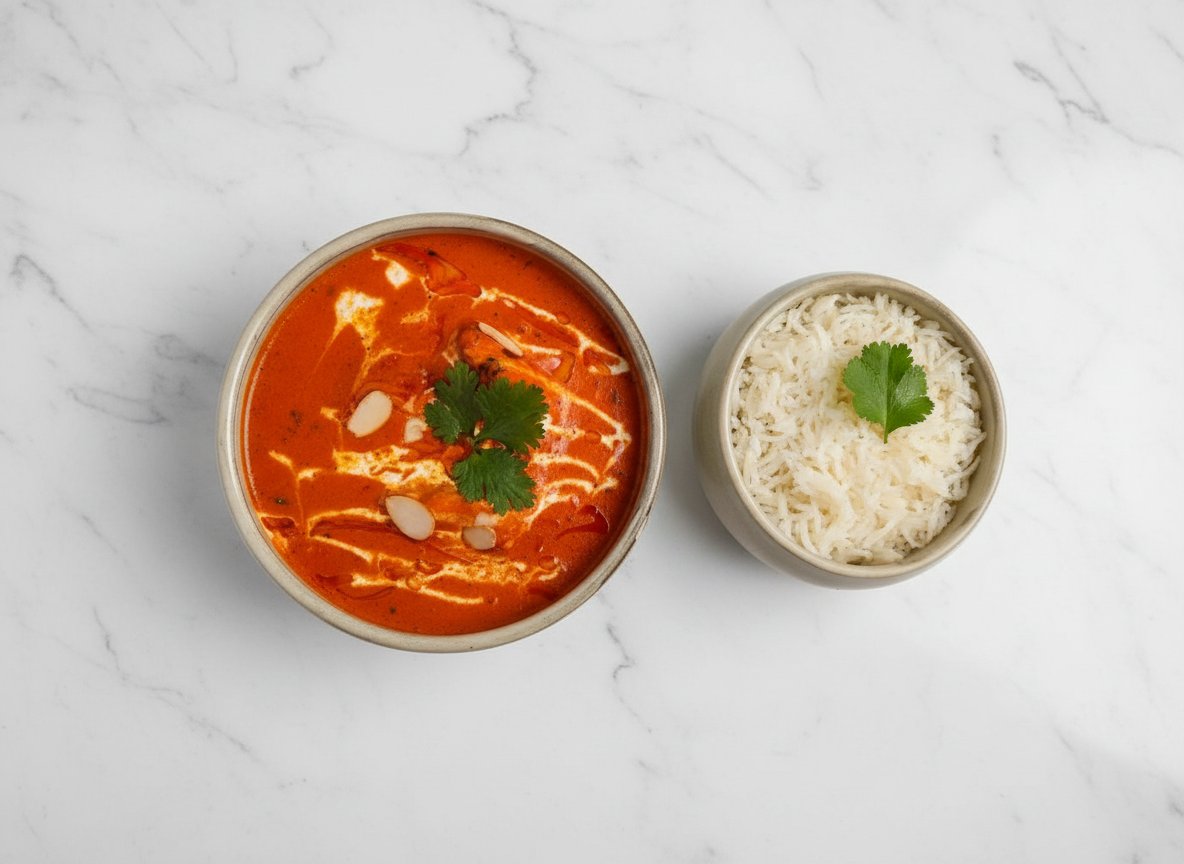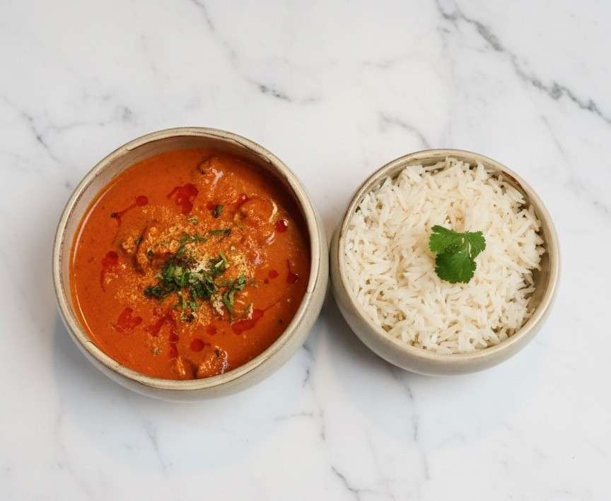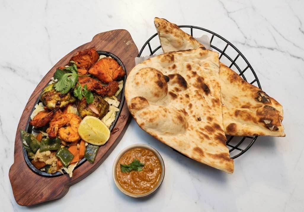 Zu den Tandoor - Gerichte servieren wir mit Tikka Masala Soße und Naan