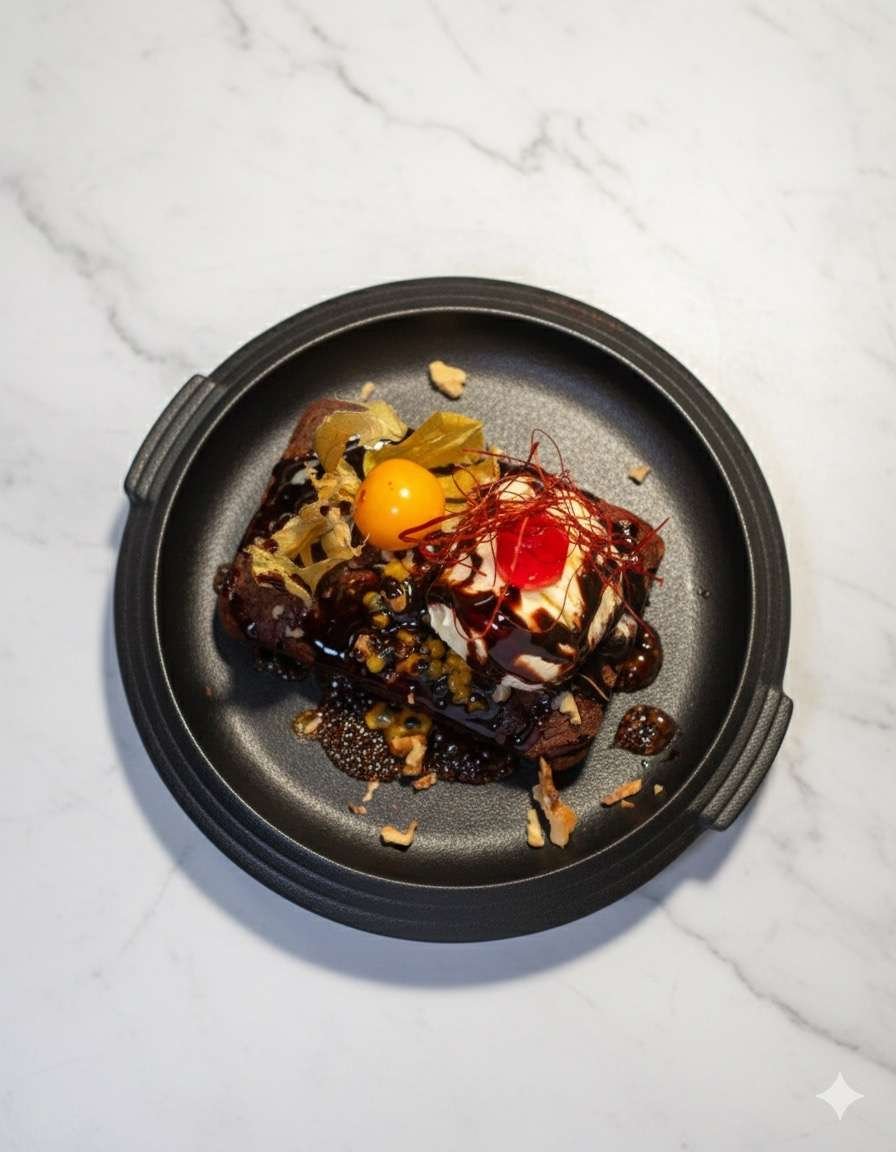 Frittierte Hausgemachter Rahmkäse mit Kichererbsenmehl paniert serviert mit Minze und Tamarinde Soße