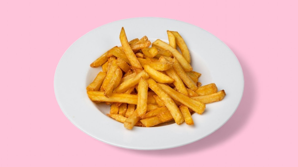 mit Pommes frites und in einer Größe deiner Wahl