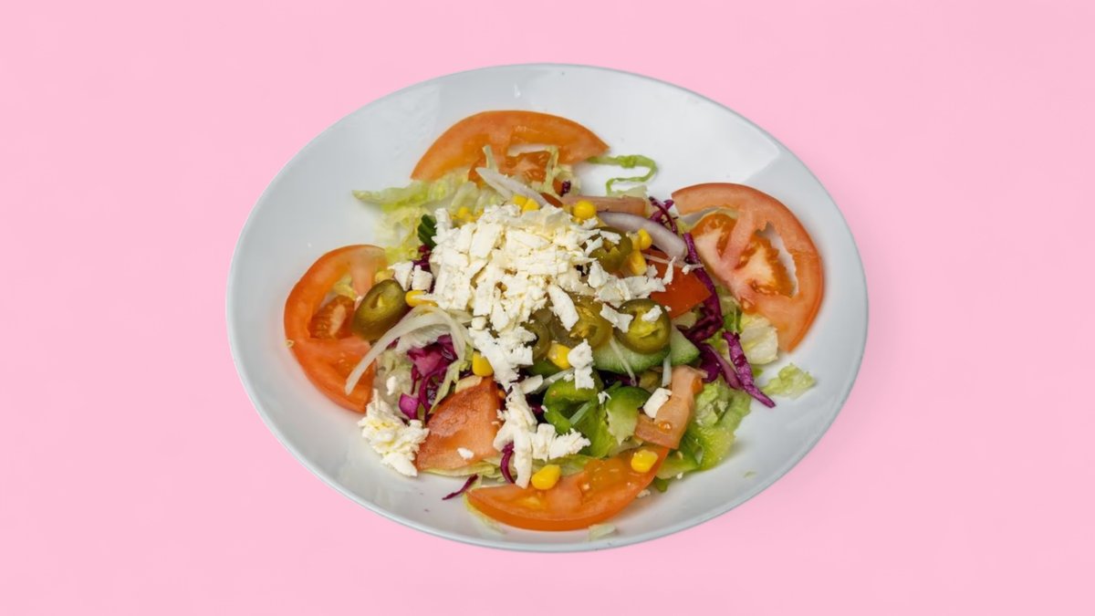 mit Salat, Soße und einer Beilage deiner Wahl