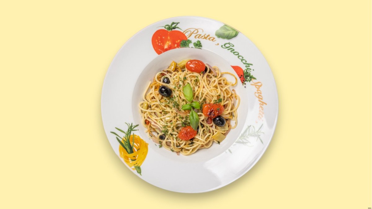 spicy with gamba rawns, focaccia, olives, pomodorini and tomato sauce