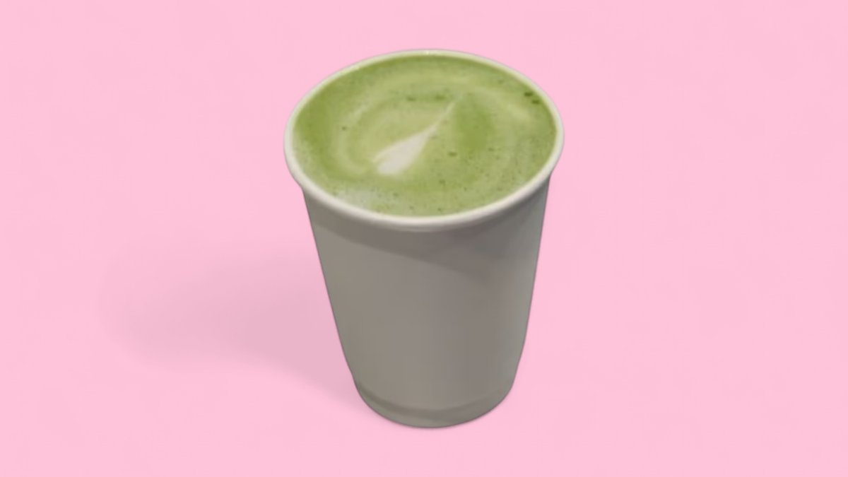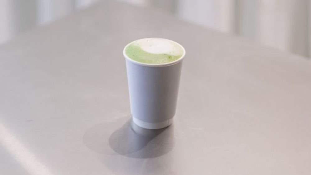 Ein heißer Matcha Latte mit Vanillegeschmack.