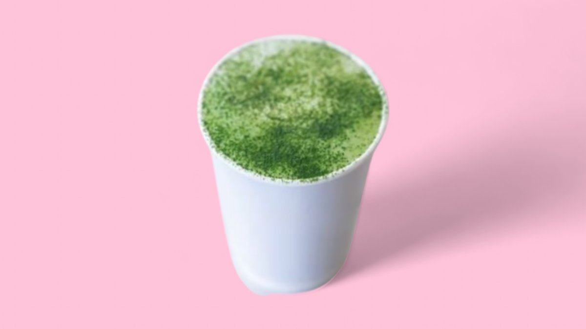 Ein heißer Matcha Latte, angereichert mit Spirulina-Algenpulver.