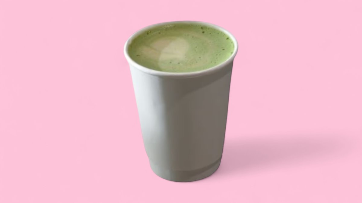 Ein heißer Matcha Latte, gesüßt mit einem Honig-Glasur-Aroma.